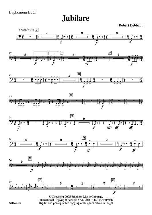 "Jubilare - Euphonium BC" Sheet Music by Robert Debbaut