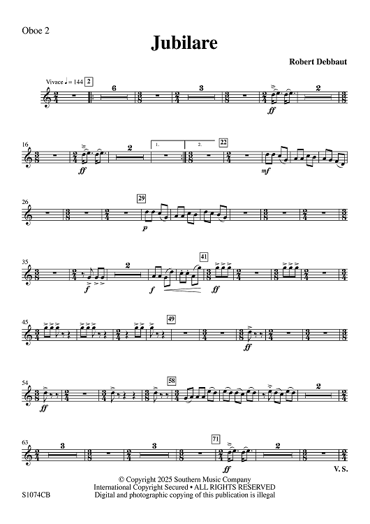 Digital Sheet Music for Jubilare - Oboe 2 by Robert Debbaut scored for Concert Band; id:508234