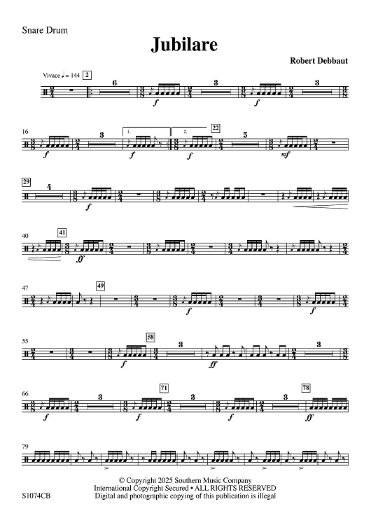 "Jubilare - Snare Drum" Sheet Music by Robert Debbaut