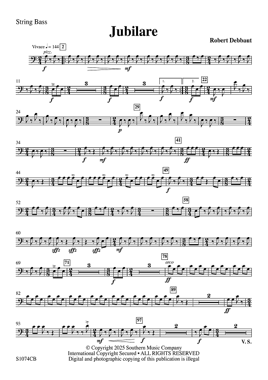 "Jubilare - String Bass" Sheet Music by Robert Debbaut