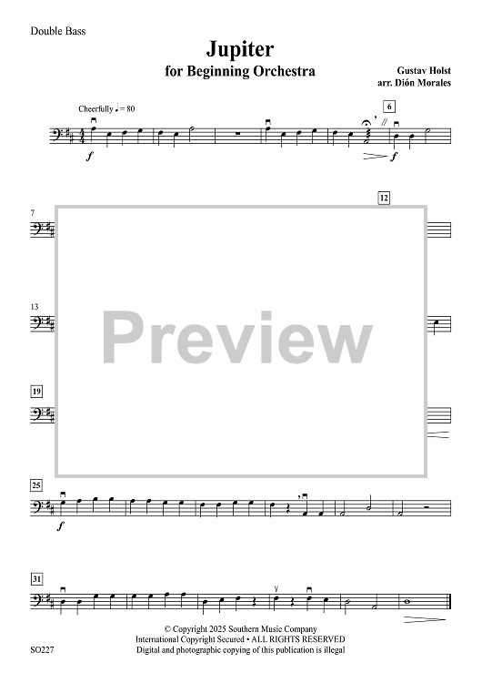 Digital Sheet Music for Jupiter for Beginning Orchestra - Double Bass by Gustav Holst, Dion Morales scored for Orchestra; id:507910
