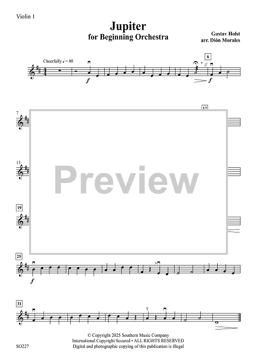 Digital Sheet Music for Jupiter for Beginning Orchestra - Violin 1 by Gustav Holst, Dion Morales scored for Orchestra; id:507906