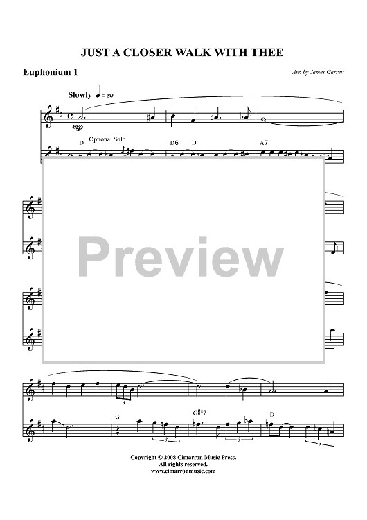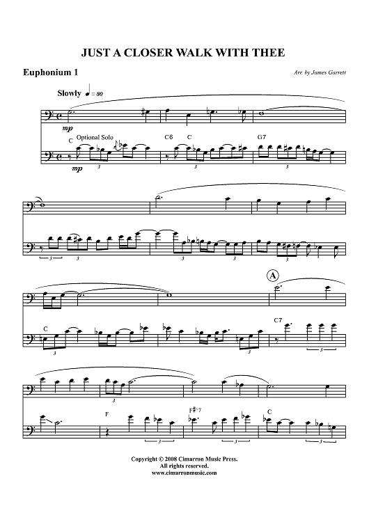 "Just a Closer Walk With Thee - Euphonium 1 BC/TC" Sheet Music by Traditional