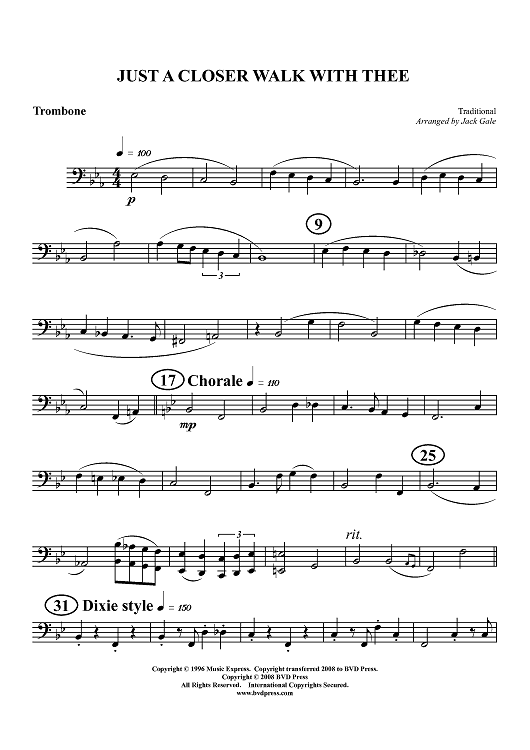 "Just a Closer Walk with Thee - Trombone" Sheet Music by Traditional