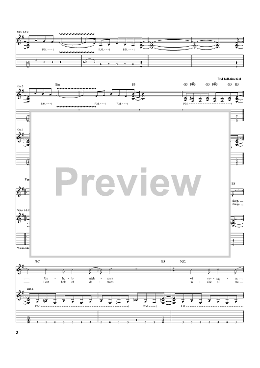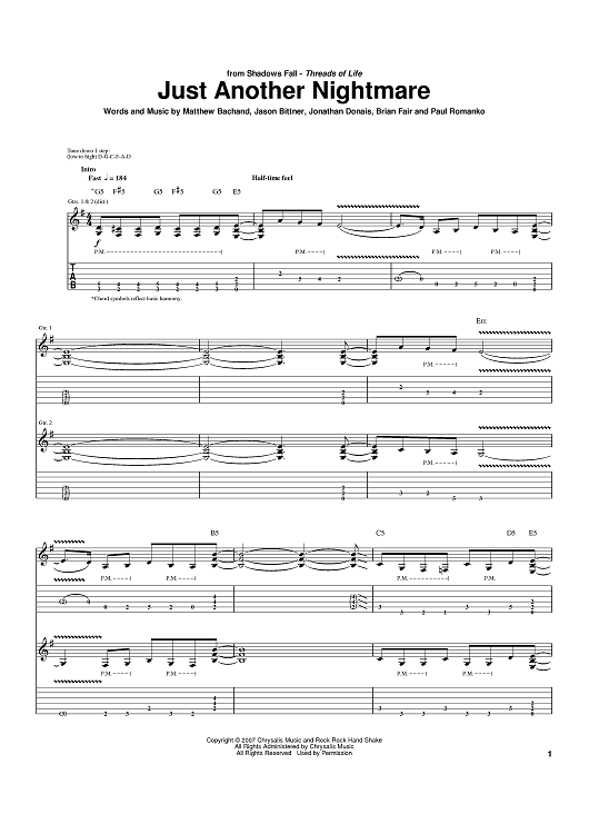 Digital Sheet Music for Just Another Nightmare by Matthew Bachand, Jason Bittner, Jonathan Donais, Brian Fair, Paul Romanko, Shadows Fall scored for Guitar Tab; id:397394