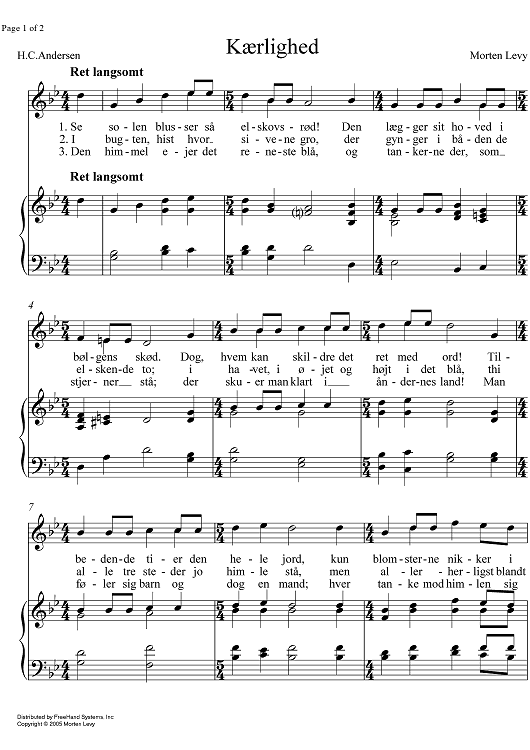 Digital Sheet Music for Kaerlighed by , Morten Levy scored for Soprano or Tenor/Piano; id:354243