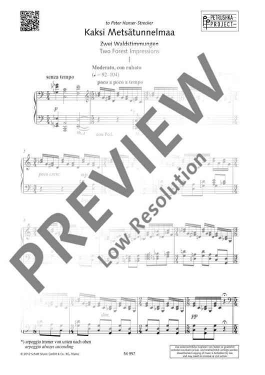 Digital Sheet Music for Kaksi Metsätunnelmaa by Olli Mustonen scored for Piano; id:480608