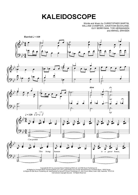 Digital Sheet Music for Kaleidoscope by Chris Martin, Coldplay, Jonny Buckland, Guy Berryman, Tor Hermansen, Mikkel Eriksen scored for Piano/Vocal/Chords; id:457144