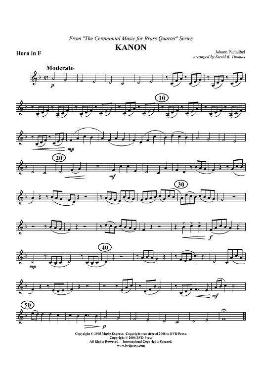 "Kanon - Horn in F (plus optional part for Trombone)" Sheet Music by Johann Pachelbel