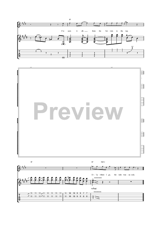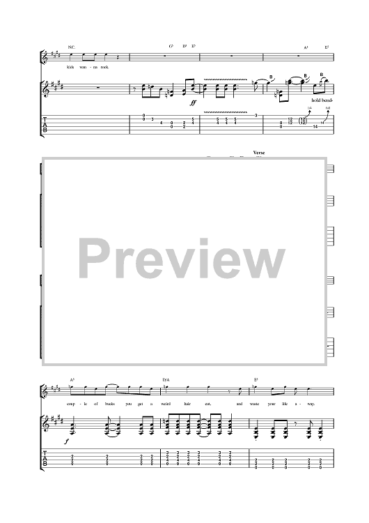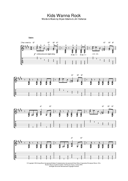 Digital Sheet Music for Kids Wanna Rock by Bryan Adams, Robert Lange scored for Guitar Tab; id:378859