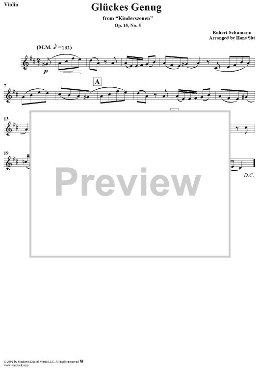 "Kinderszehen, Op. 15, No. 05, "Glückes genug" (contentedness), - Violin" Sheet Music by Robert Schumann