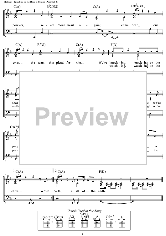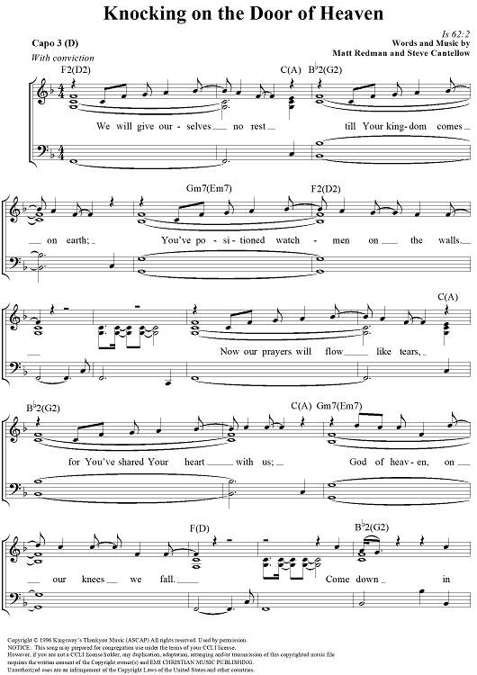 Digital Sheet Music for Knocking on the Door of Heaven by Matt Redman, Steve Cantellow scored for Piano/Vocal/Chords; id:95649