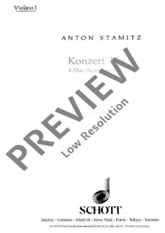 Digital Sheet Music for Konzert No. 2 F-Dur in F major - Violin I Rip. by Anton Stamitz scored for Viola And String Orchestra; id:482035