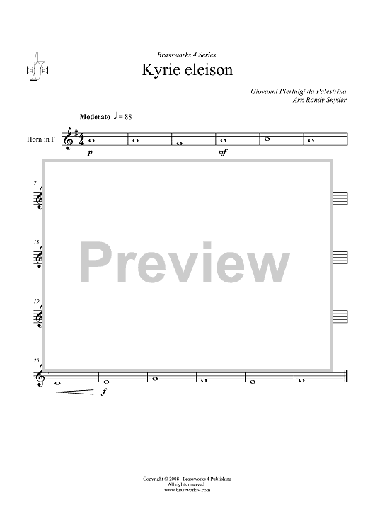 Digital Sheet Music for Kyrie eleison - Horn in F by Giovanni Pierluigi da Palestrina, Randy Snyder scored for Brass Quartet; id:410333
