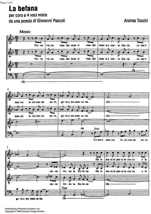 Digital Sheet Music for La befana by , Andrea Toschi scored for SATB Choir; id:330179