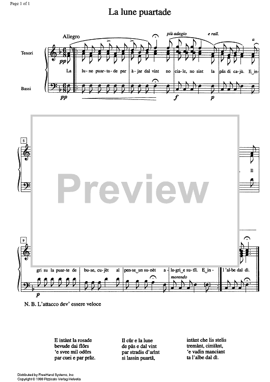 Digital Sheet Music for La lune puartade by , Arturo Zardini scored for SATB Choir; id:331174