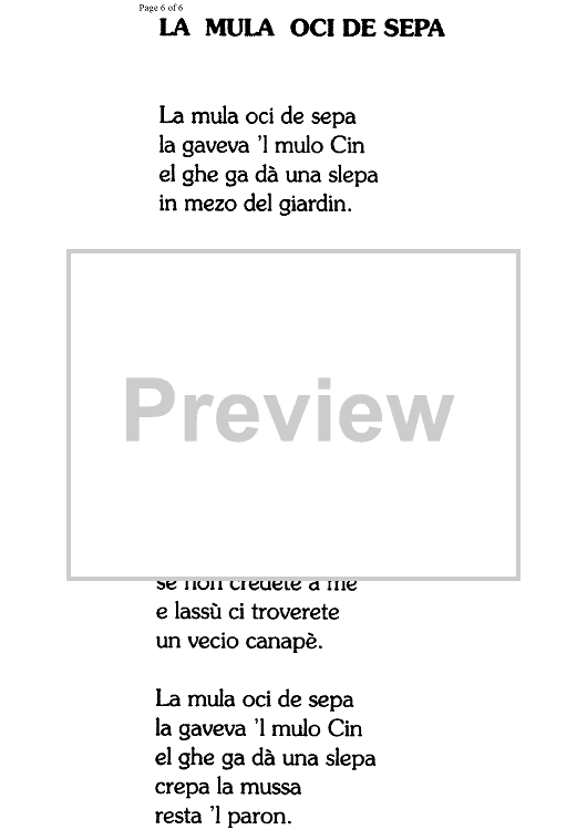 "La mula oci de sepa" Sheet Music by Giulio Viozzi