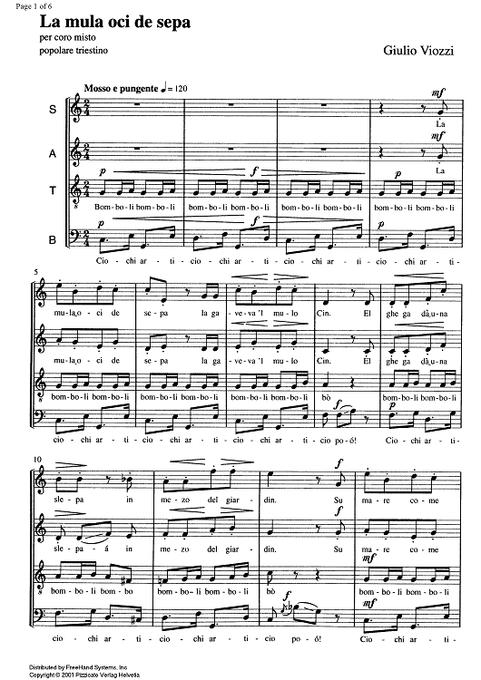 Digital Sheet Music for La mula oci de sepa by , Giulio Viozzi scored for SATB Choir; id:344238