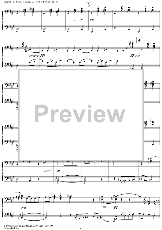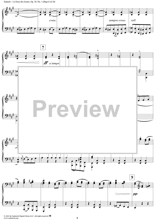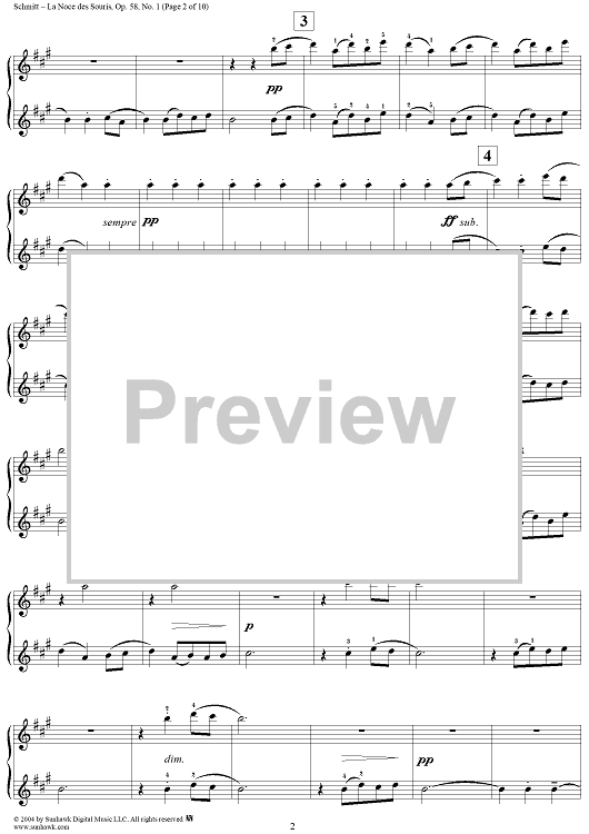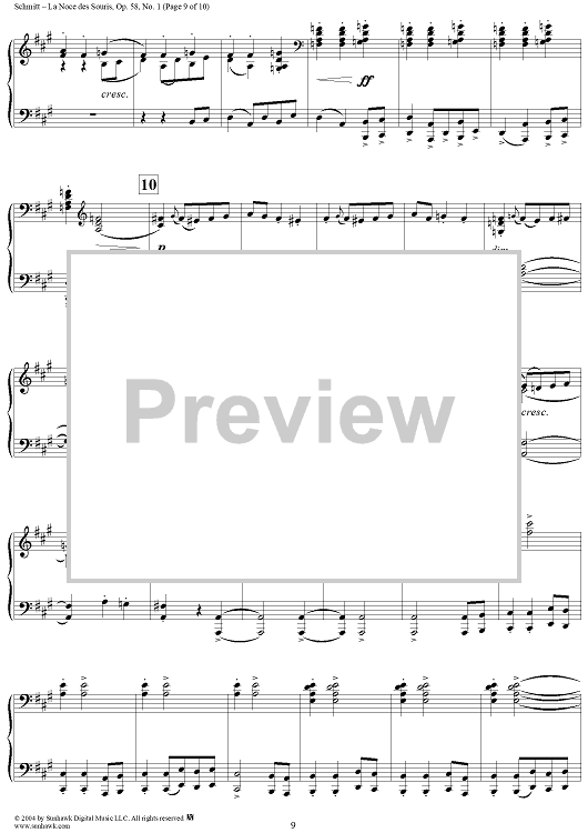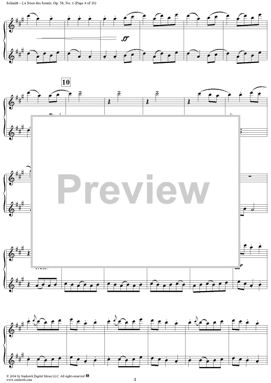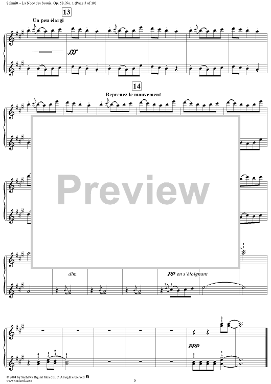 Digital Sheet Music for La Noce des Souris, from "Le Petit Elfe Ferme-l'oeil", Op. 58 by Florent Schmitt scored for 1 Piano, 4 Hands; id:296046
