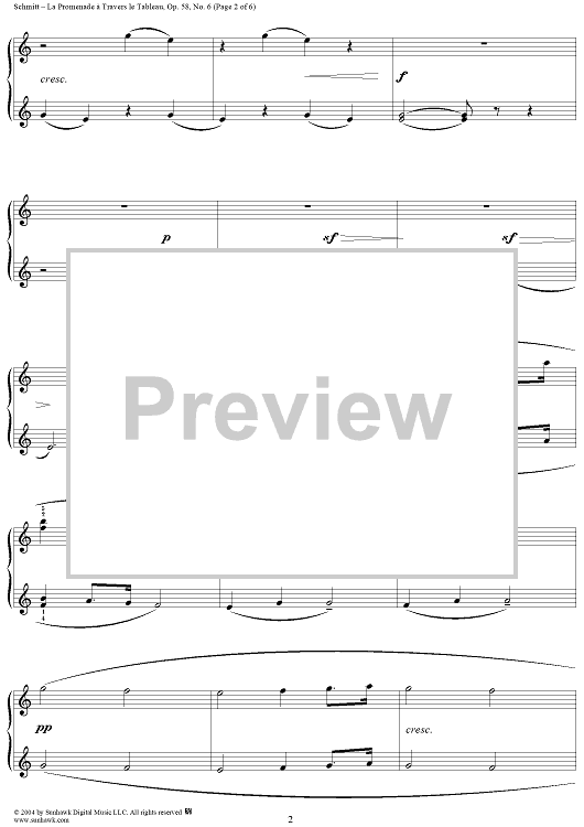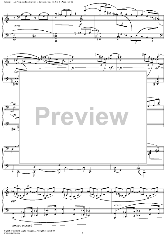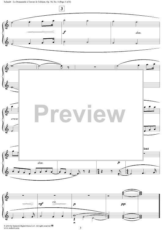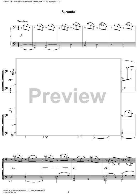 Digital Sheet Music for La Promenade à Travers le Tableau, from "Le Petit Elfe Ferme-l'oeil", Op. 58 by Florent Schmitt scored for 1 Piano, 4 Hands; id:296070