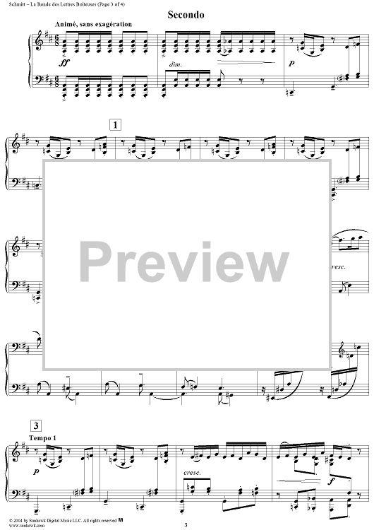 Digital Sheet Music for La Ronde des Lettres Boiteuses, from "Le Petit Elfe Ferme-l'oeil", Op. 58 by Florent Schmitt scored for 1 Piano, 4 Hands; id:296064