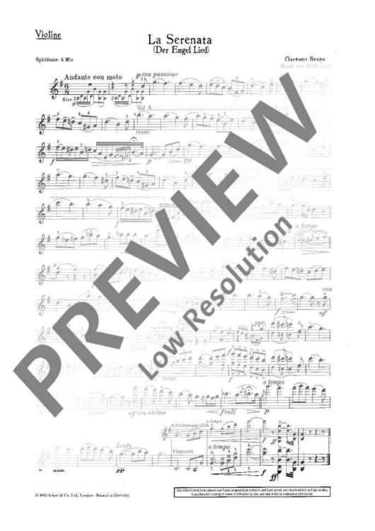 Digital Sheet Music for La Serenata G major by Gaetano Braga scored for Violin And Piano; id:475025