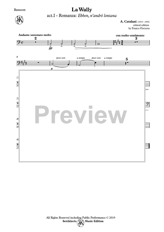 Digital Sheet Music for La Wally - act 1 - Romanza: "Ebben, n'andro lontana" - Bassoon by Alfredo Catalani, Franco Pisciotta scored for Orchestra; id:505538