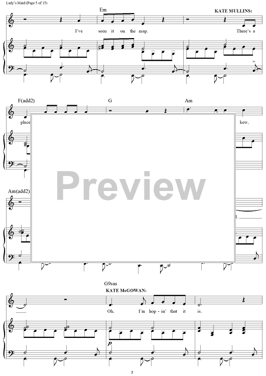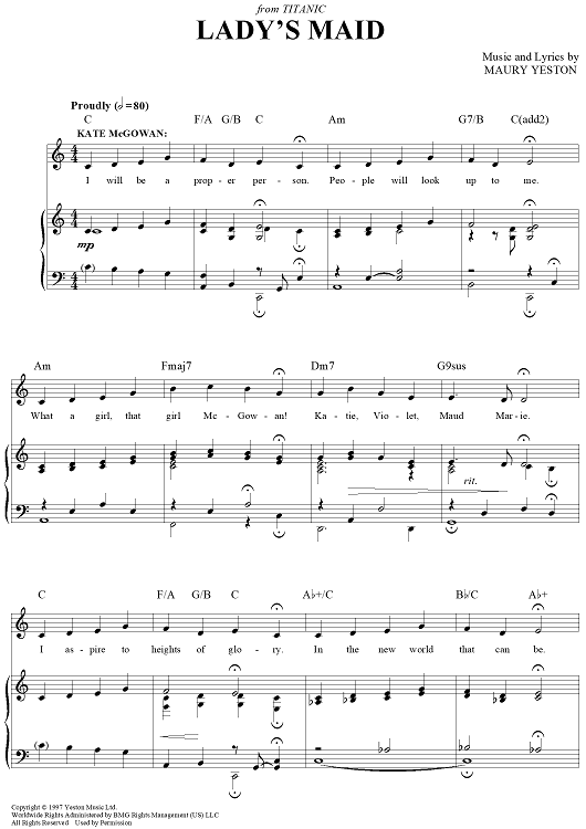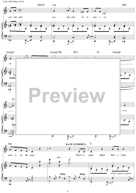 Digital Sheet Music for Lady's Maid by Maury Yeston scored for Piano/Vocal/Chords; id:500094