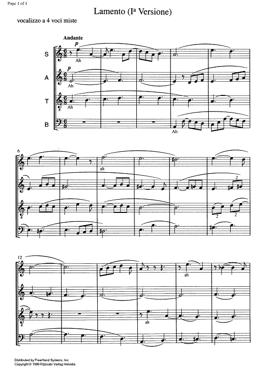 Digital Sheet Music for Lamento - Ia Versione by , Vito Levi scored for SATB Choir; id:333753