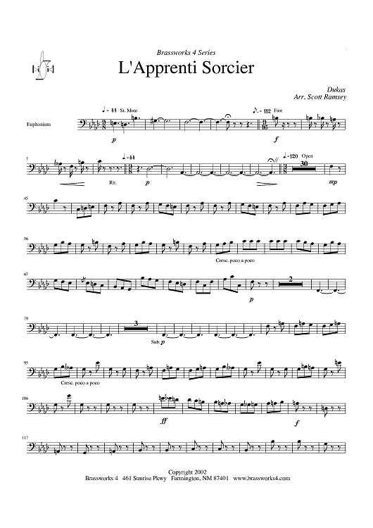 Digital Sheet Music for L'Apprenti Sorcier - Euphonium by Scott A. Ramsey, Paul Dukas scored for Brass Quartet; id:320083