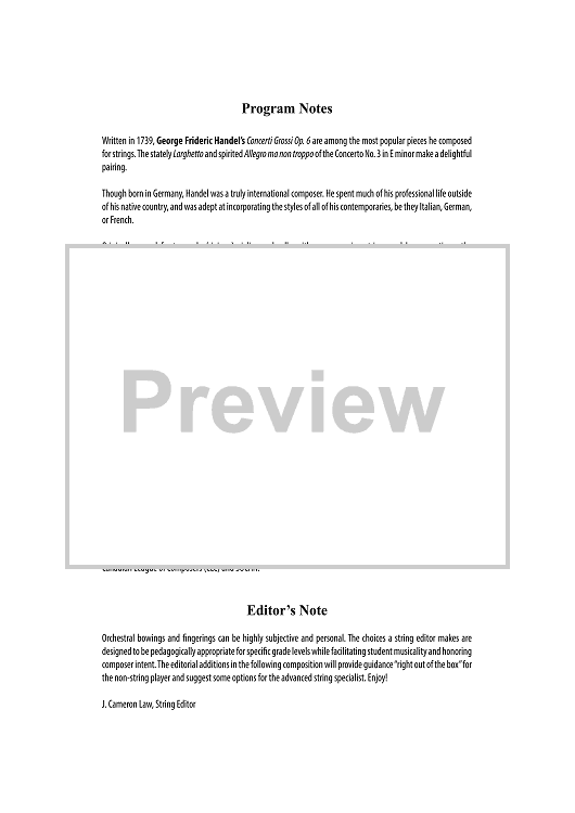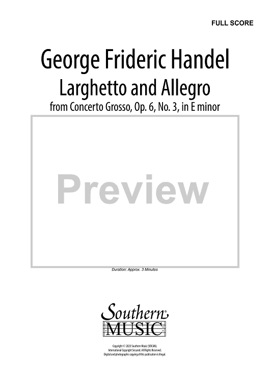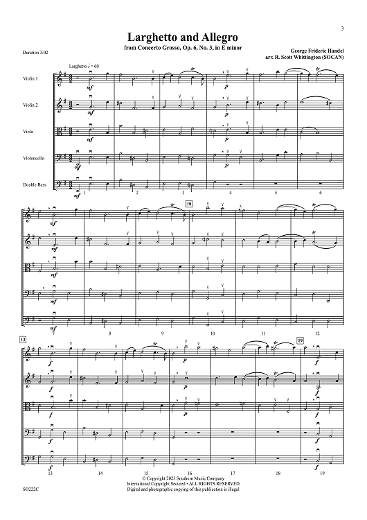 Digital Sheet Music for Larghetto and Allegro Op. 6 No. 3 - Full Score by George Frideric Handel, R. Scott Whittington scored for Orchestra; id:507891