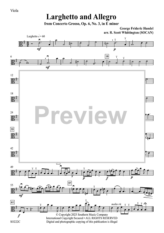 Digital Sheet Music for Larghetto and Allegro Op. 6 No. 3 - Viola by George Frideric Handel, R. Scott Whittington scored for Orchestra; id:507894