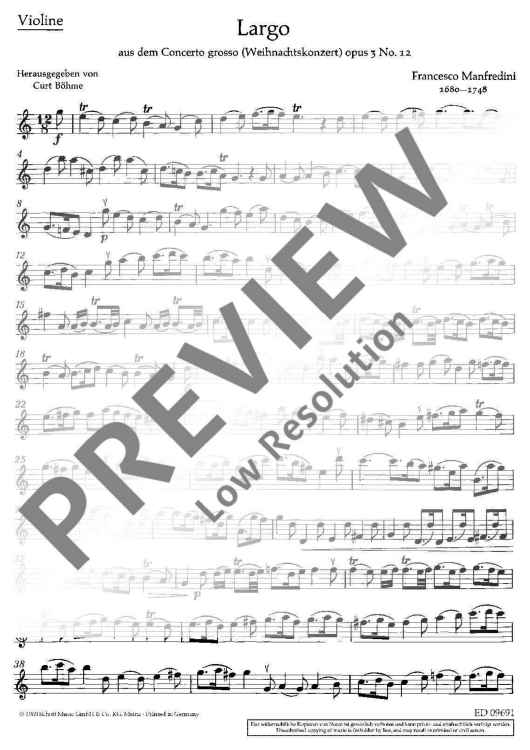 Digital Sheet Music for Largo by Francesco Manfredini scored for Violin And Piano; id:475031
