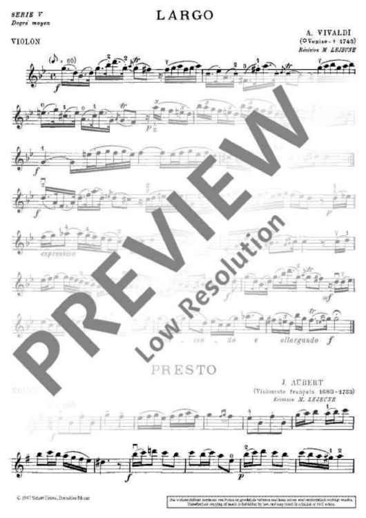 Digital Sheet Music for Largo/Presto by Antonio Vivaldi, Jacques Aubert scored for Violin And Piano; id:476295