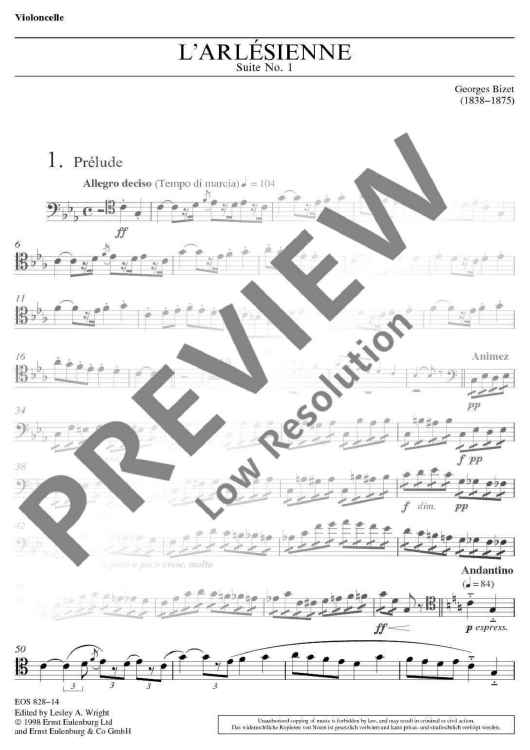 Digital Sheet Music for L'Arlesienne Suite no. 1 - Cello by Georges Bizet scored for Orchestra; id:475082