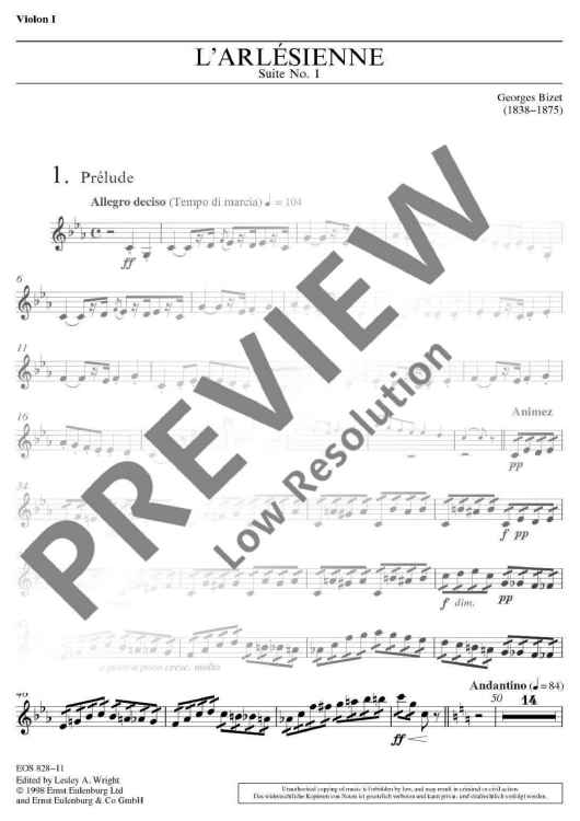 "L'Arlesienne Suite no. 1 - Violin I" Sheet Music by Georges Bizet