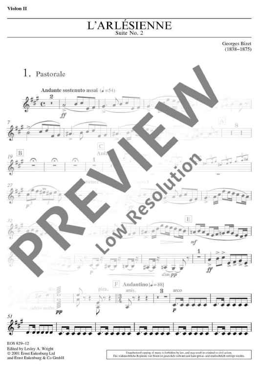 Digital Sheet Music for L'Arlésienne Suite No. 2 - Violin II by Georges Bizet, Lesley A. Wright scored for Orchestra; id:476620