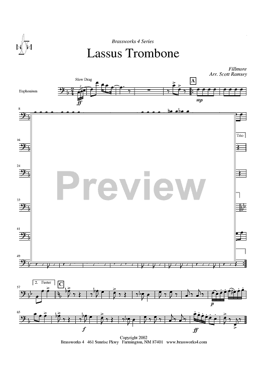 Digital Sheet Music for Lassus Trombone - Euphonium by Henry Fillmore, Scott A. Ramsey scored for Brass Quartet; id:316712