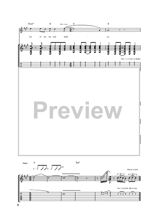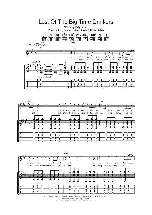 Digital Sheet Music for Last Of The Big Time Drinkers by Stuart Cable, Kelly Jones, Richard Jones, Stereophonics scored for Guitar Tab; id:393453