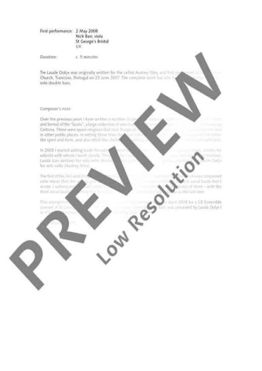 Digital Sheet Music for Lauda Dolçe II by Gavin Bryars scored for Viola; id:491249