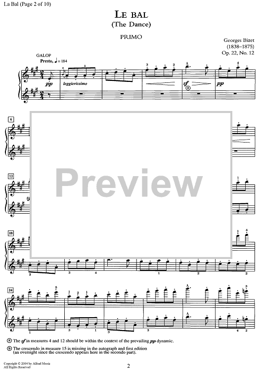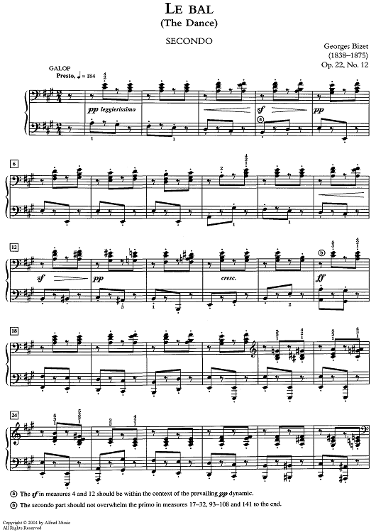 Digital Sheet Music for Le Bal (The Dance) by Georges Bizet scored for 1 Piano, 4 Hands; id:468613