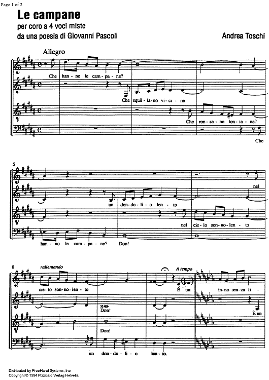 Digital Sheet Music for Le campane by , Andrea Toschi scored for SATB Choir; id:330176