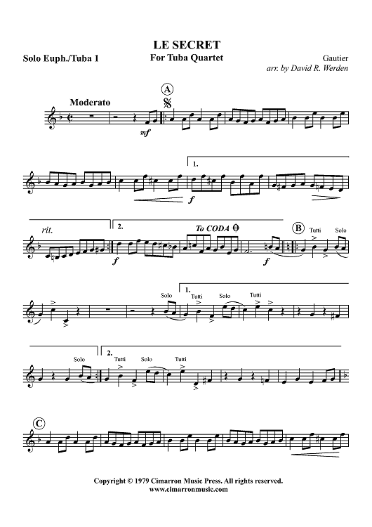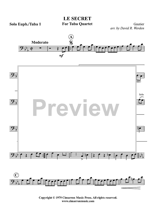 Digital Sheet Music for Le Secret - Euphonium 1 BC/TC by Théophile Gautier, David Werden scored for Tuba Quartet; id:319062