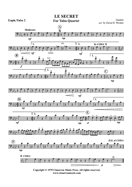 Digital Sheet Music for Le Secret - Euphonium 2 BC/TC by Théophile Gautier, David Werden scored for Tuba Quartet; id:319063