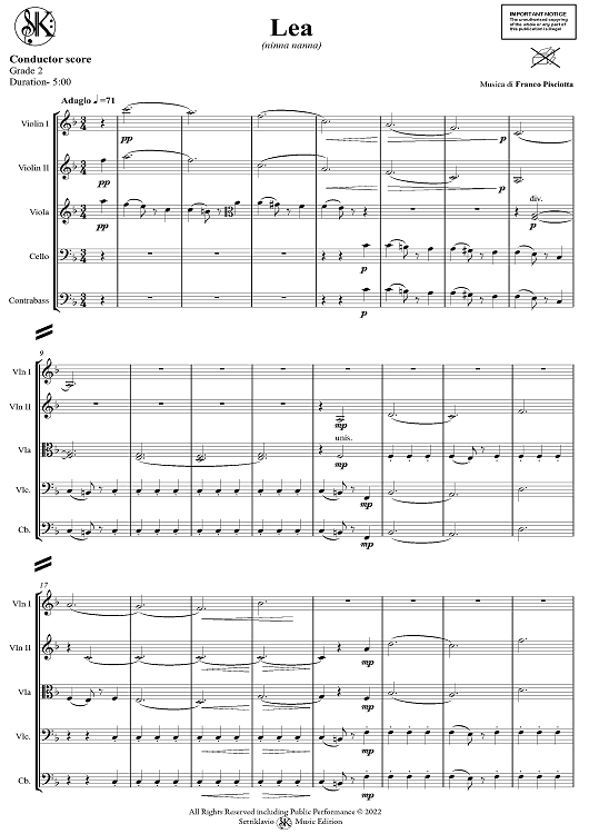 "Lea (ninna nanna) - for String Orchestra - Score" Sheet Music by Franco Pisciotta