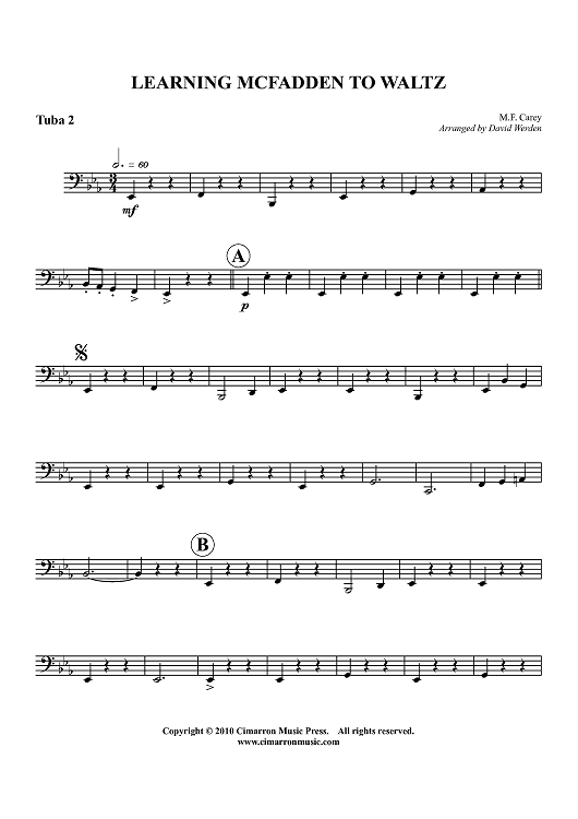 Digital Sheet Music for Learning Mcfadden To Waltz - Tuba 2 by David Werden, M. F. Carey scored for Tuba Quartet; id:410016
