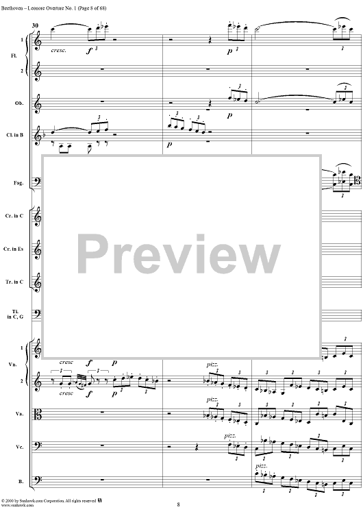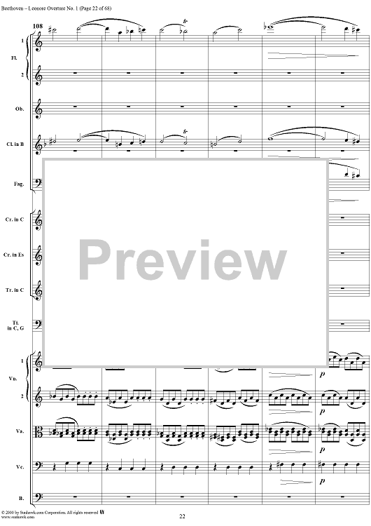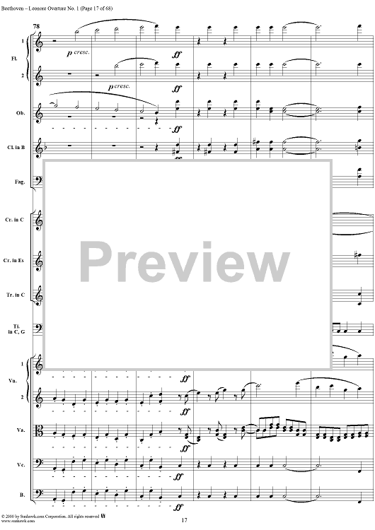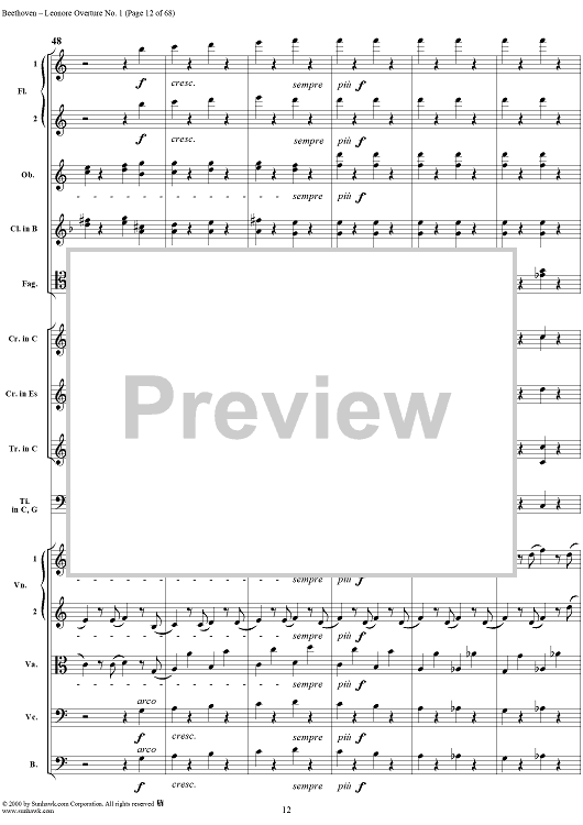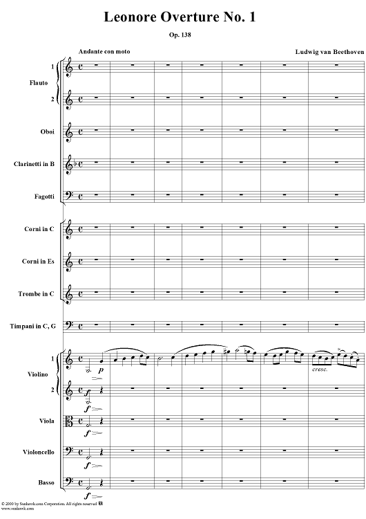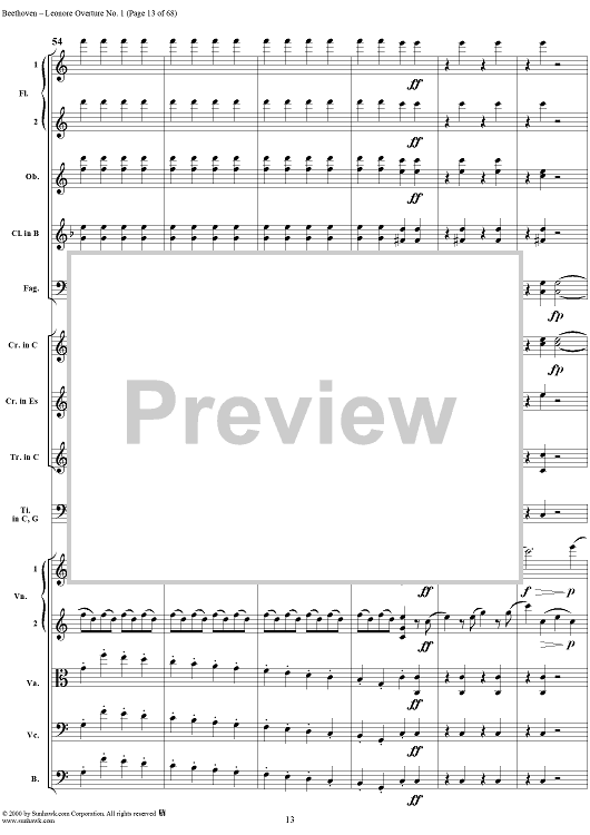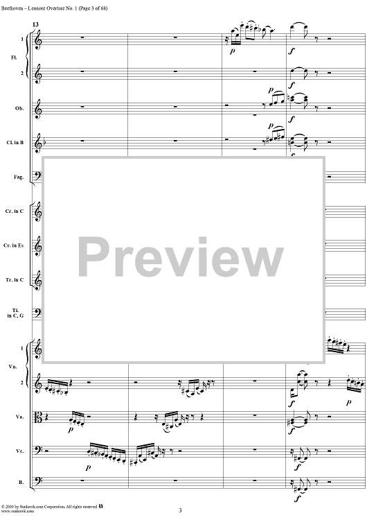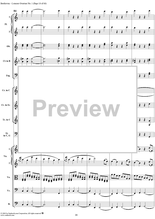 Digital Sheet Music for Leonore Overture no. 1 , op. 138 - Full Score by Ludwig van Beethoven scored for Orchestra; id:235196