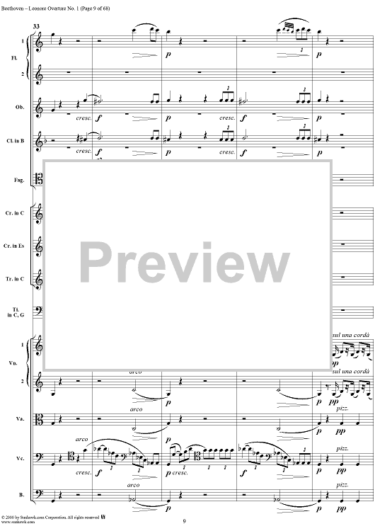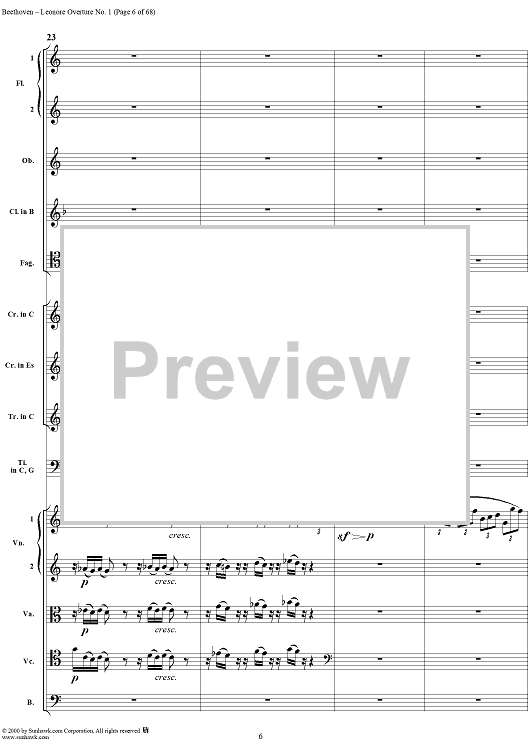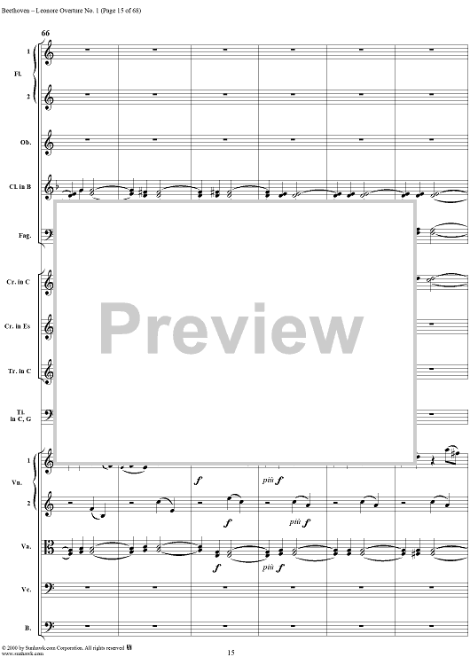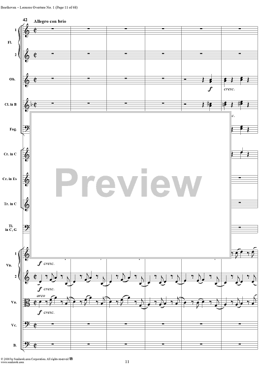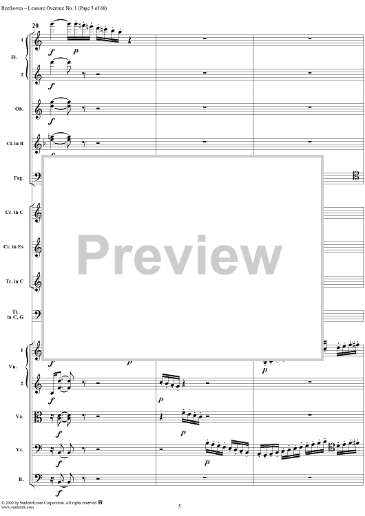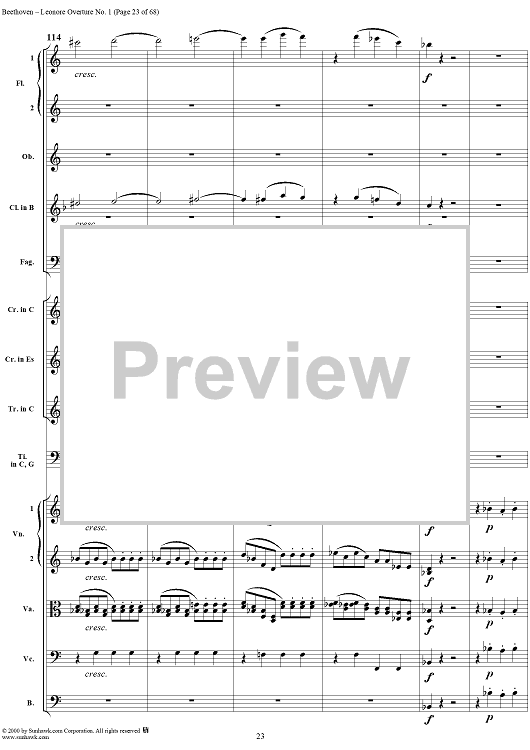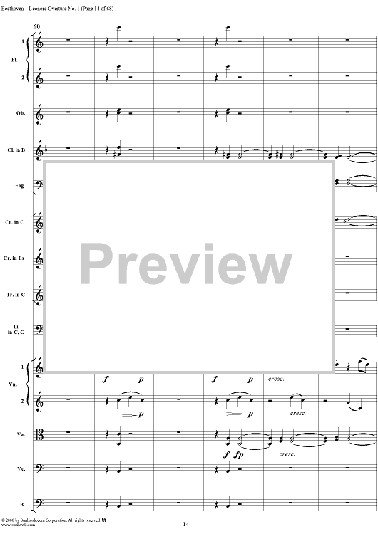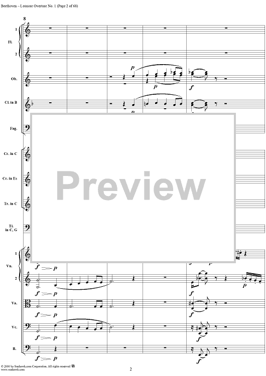Digital Sheet Music for Leonore Overture no. 1 , op. 138 - Full Score by Ludwig van Beethoven scored for Orchestra; id:235196