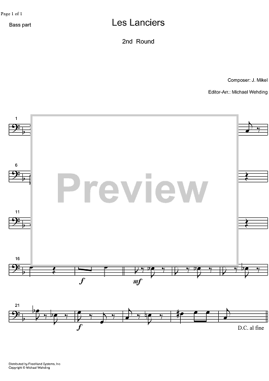 "Les Lanciers 2nd Round - Bass" Sheet Music by J. Mikel