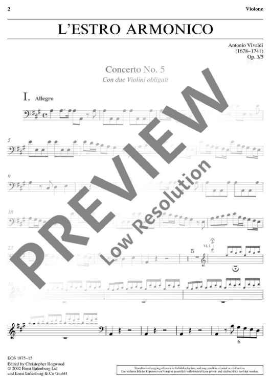 "L'estro Armonico - Double Bass" Sheet Music by Antonio Vivaldi